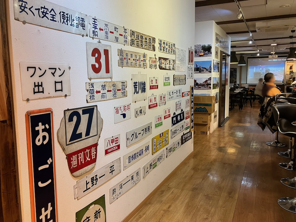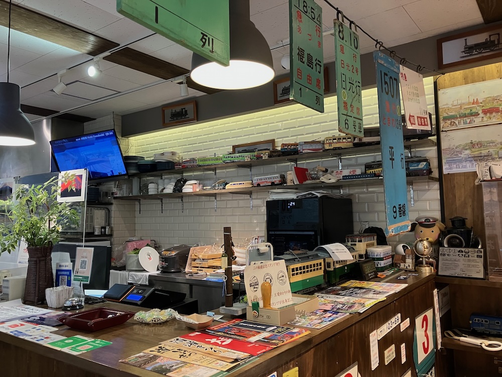 あちらのテーブル席の椅子は引退した車輌の本物のシートなんだそうです。