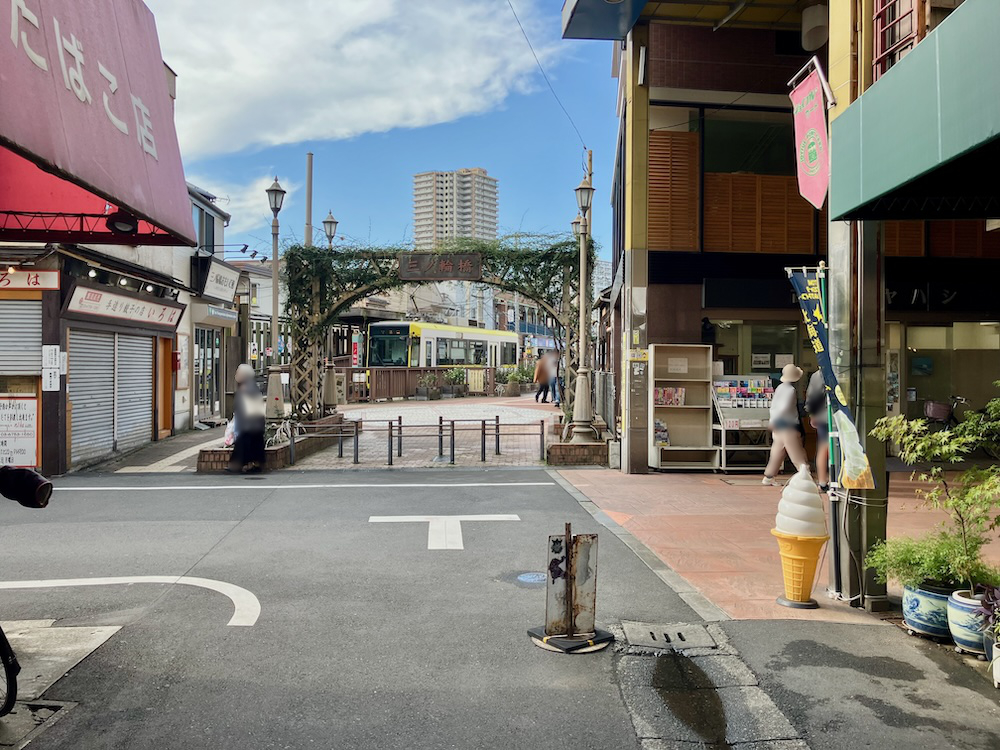 「三ノ輪橋」停留所の降車ホームに近い商店街の出入り口