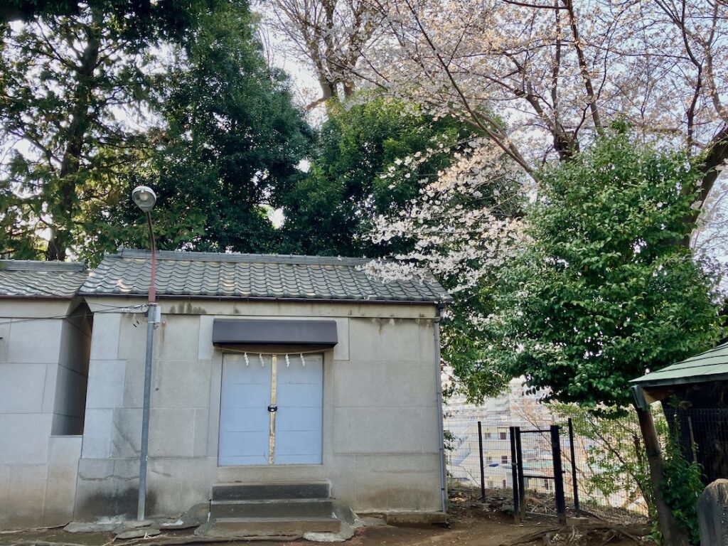 社殿右手側奥の様子。桜が咲いてる。