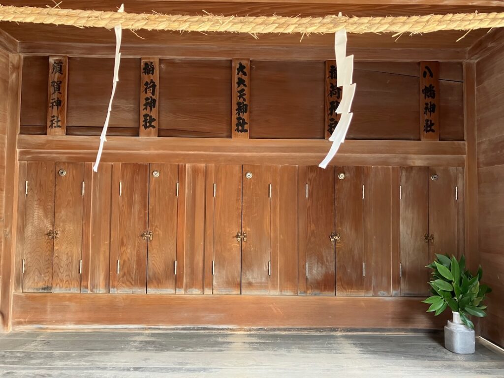 神社の名札が架けられてます。左から、