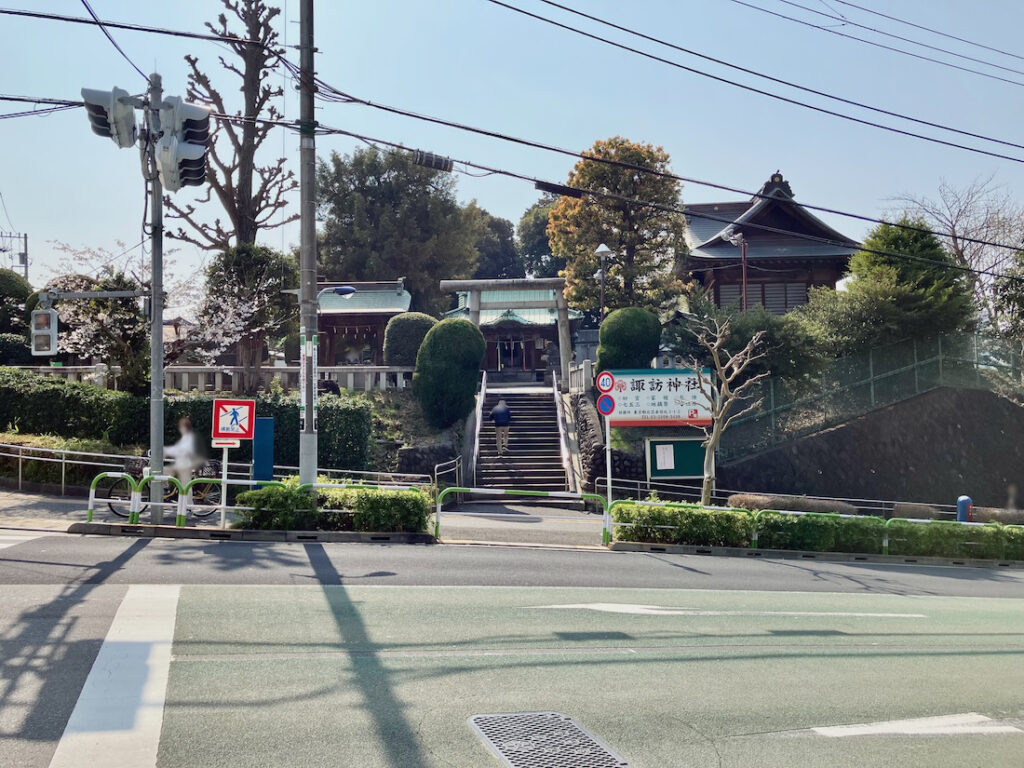 JR北赤羽駅の近くを通る環状8号線から赤羽並木通りの「宮の坂」と呼ばれる坂を登って行くと、坂を登り切らない微妙な辺りに諏訪神社は鎮座されてます。