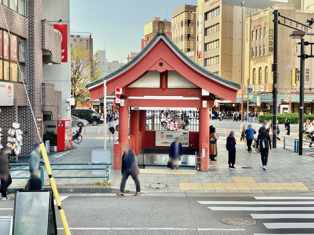 地下鉄銀座線で上野駅ー浅草駅、4番の出入り口
